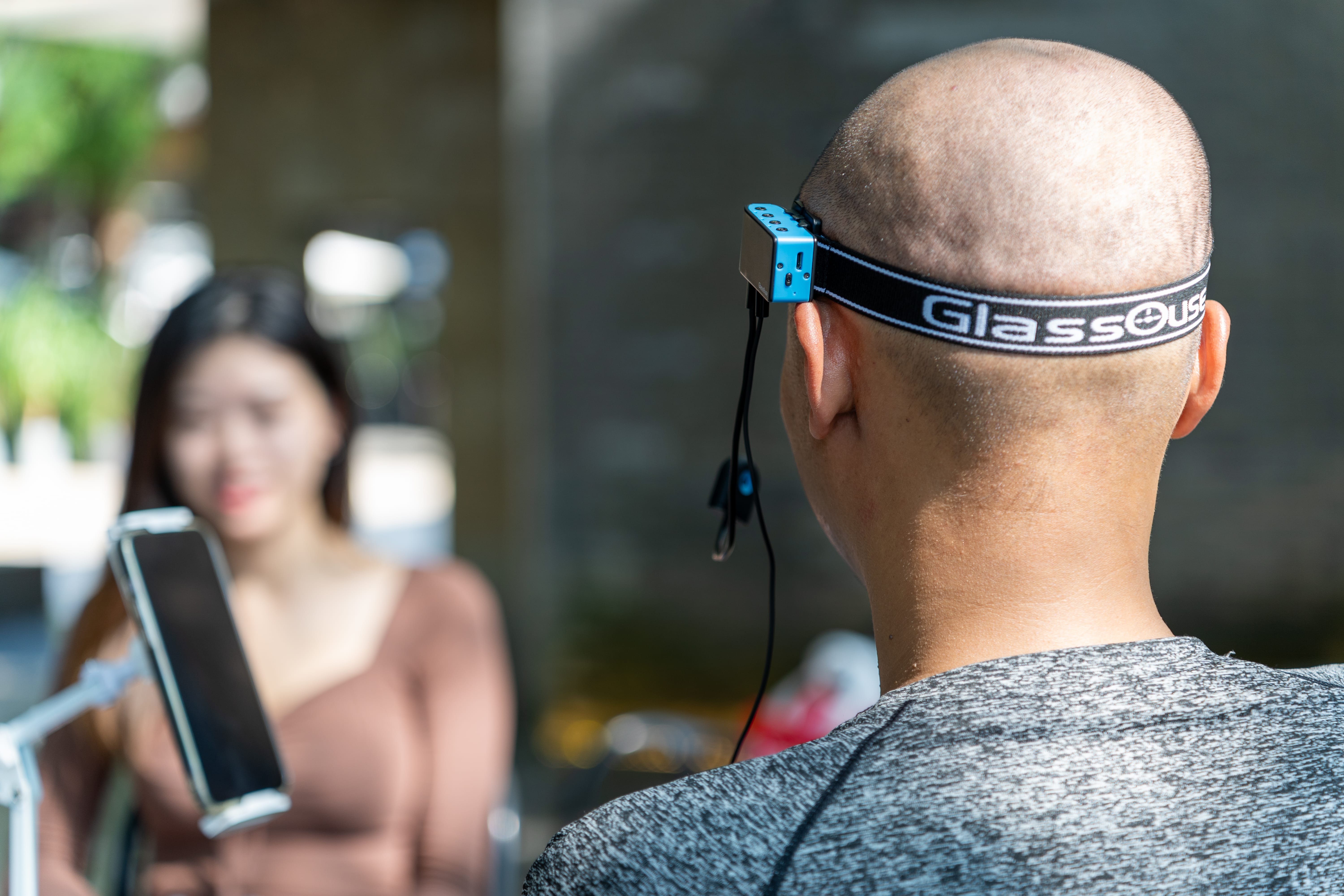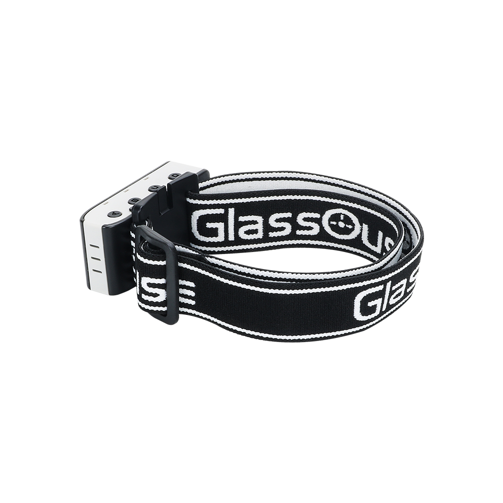 G-Headband is worn over your head with GlassOuse attached to its clasp. IT